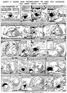 He "wrote" dozens of humour scripts, often taking over established characters from Hugh McNeill ("Our Ernie", "Deed-a-Day Danny", "Young Joey") as well as creating new characters like "Blossom" and "Freddie Frog". I put inverted commas around "wrote" because he produced visual scripts, drawing out ideas with the text pencilled in as he had done on his initial samples. "It worked and nobody complained," he told me. "I still maintain you can't visualise on a typewriter to this day."
