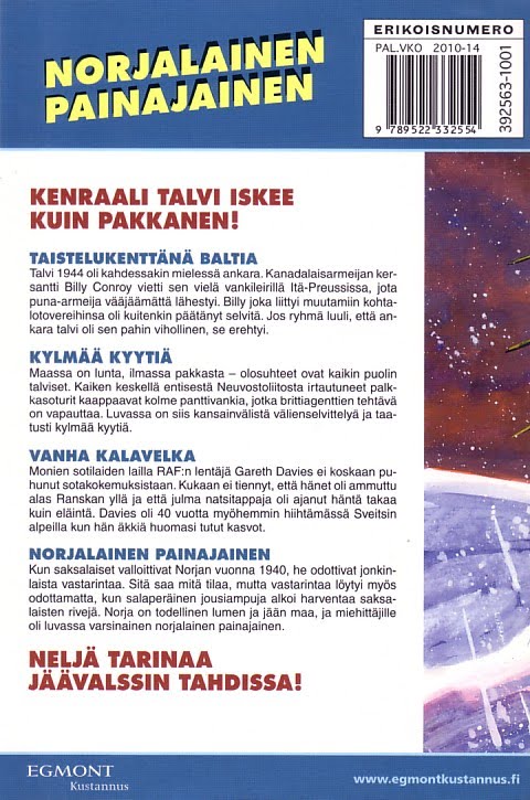 There are six Erikoisnumero books published per year with this particular issue being 1E/10, the first special for 2010 while the standard Korkeajännitys is published once every 6 weeks for a total of 8 issues per year also in same the 4 stories per book format. Erikoisnumero specials published in 2009 included themes of air combat, armoured combat and stories from the German perspective.