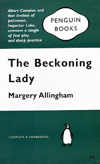 Uncle William has died, apparently of natural causes; a murdered man lies in a ditch, undiscovered, for eight days; Mr Campion receives a message in the language of flowers. The truth behind these events is sinister indeed, involving the Suffolk village of Pontisbright in a tangle of foul play, cross purposes, and sharp practice. As well as Albert Campion and his wife the Lady Amanda, we meet Detective Chief Inspector Charlie Luke, this time helplessly in love; and Mr Magersfontein Lugg who, hitherto invulnerable, himself nearly succumbs to the sweetest of all dangers. The large cast also includes a troupe of clowns, a model secretary, a spiv, an assortment of children, and Tonker Cassands, inventor of that popular musical instrument, the Glubalubalum. His wife Minnie, a well-known painter, and owner of The Beckoning Lady, is impractical about financial affairs. Miss Allingham weaves her web with consummate skill: fantastic, light, glittering on the surface, The Beckoning Lady has an intricate logic of character and motive, suspicion and detection. Moreover, the author puts a shrewd finger on one of the more fantastic anomalies in present-day taxation.Hide My Eyes (London, Chatto & Windus, 1958; as Tether’s End, Garden City, N.Y., Doubleday, 1958; as Ten Were Missing, New York, Dell, 1959)