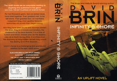 Today's random scannery... well, as I've been talking about the SFE and noted a couple of authors, here's a quartet of covers by authors Robert J. Sawyer, China Miéville and David Brin. The Brins I've chosen (a) because I picked them up recently and they're still sitting on the pile of books next to my desk and (b) because they quote the old paper version of the SFE, the quote no longer matching the revised text. However, it's nice to see that author John Clute is still enthusiastic about the series, calling Startide Rising (which is part of the series, not pictured here) "one of the most rousing space operas yet written".