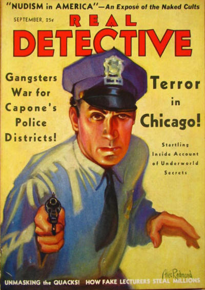 In response, Andrews penned "Gangsters Grip Chicago!" for Real Detective (September 1932) and followed up with a revelatory article the following month, "Author of 'X Marks the Spot' Tells All". and offered copies of his $1.00 book by post to readers of the magazine for 25 cents.