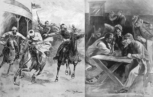 It is not known where Raymond Potter received his artistic training (if, indeed, he received any), but by the time of the 1881 census he was described as an “Artist in wood” and living at 50 Chetwynd Road, St. Pancras, living with his parents and his five siblings. However, his earliest known work didn’t appear until nine years later, when he illustrated a reprint of a novel by Annie Webb for the Religious Tract Society. In 1892, he contributed to The Penny Illustrated Paper, The Pictorial World and The Ludgate Monthly, and in 1893 he contributed to The British Workman, The Illustrated London News, The Pall Mall Magazine, The Sketch, Young England, and The English Illustrated Magazine (to which he continued to contribute until 1899). Throughout the rest of the 1890s he contributed to The Band of Hope Review, Pearson’s Weekly, The Windsor Magazine, The Family Friend, Short Stories, The Leisure Hour, The Woman At Home, The Mother’s Companion, The Osborne, The Illustrated Sporting and Dramatic News, Pearson’s Magazine, and The Royal Magazine, although he was never a regular contributor to any of these publications.