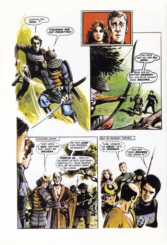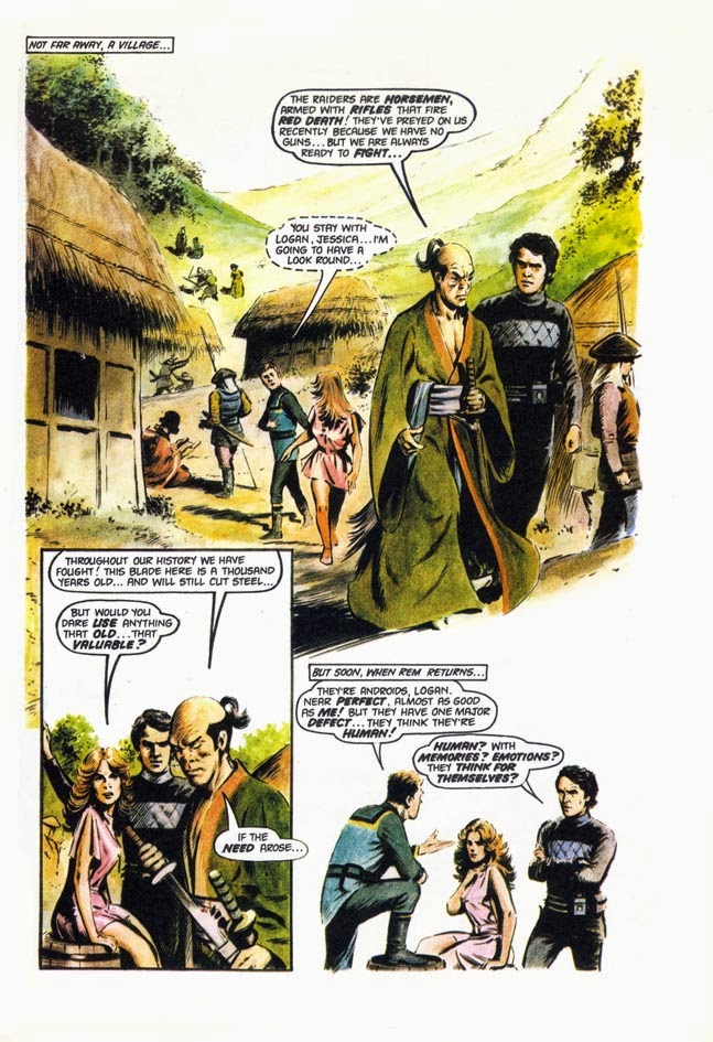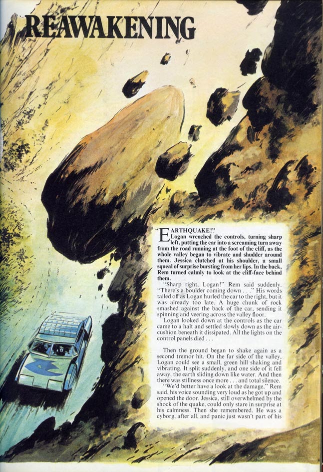 The annual opened with a 3-page strip that outlined the background of the show and introduced the characters, including Rem, a cyborg played by Donald Moffat in the TV show.
