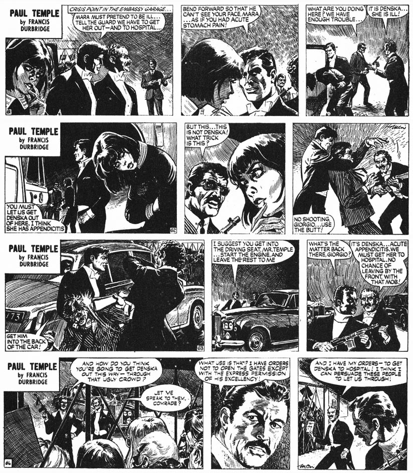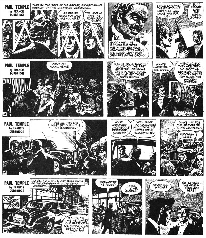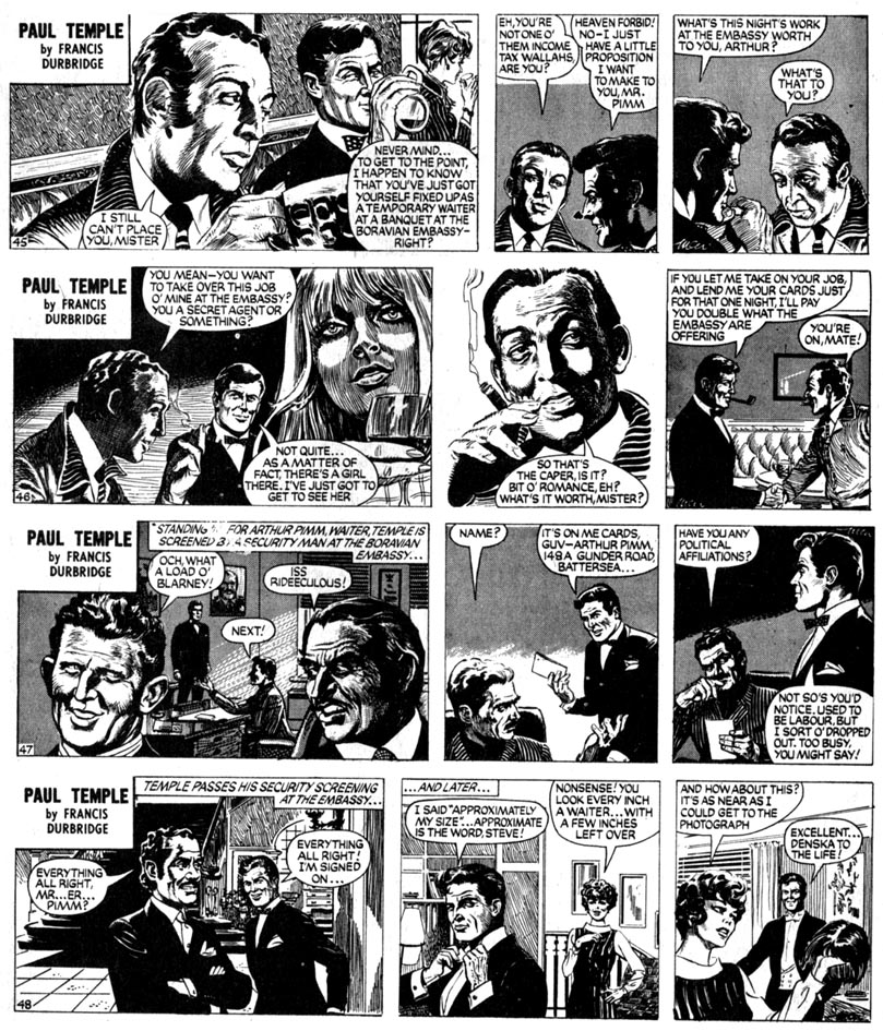 The art is by John McNamara, who had been drawing the strip for 12 years by the time this serial appeared in 1966. I don't know who was writing the strip but it probably wasn't Francis Durbridge, who wasn't even writing the novels at that point.